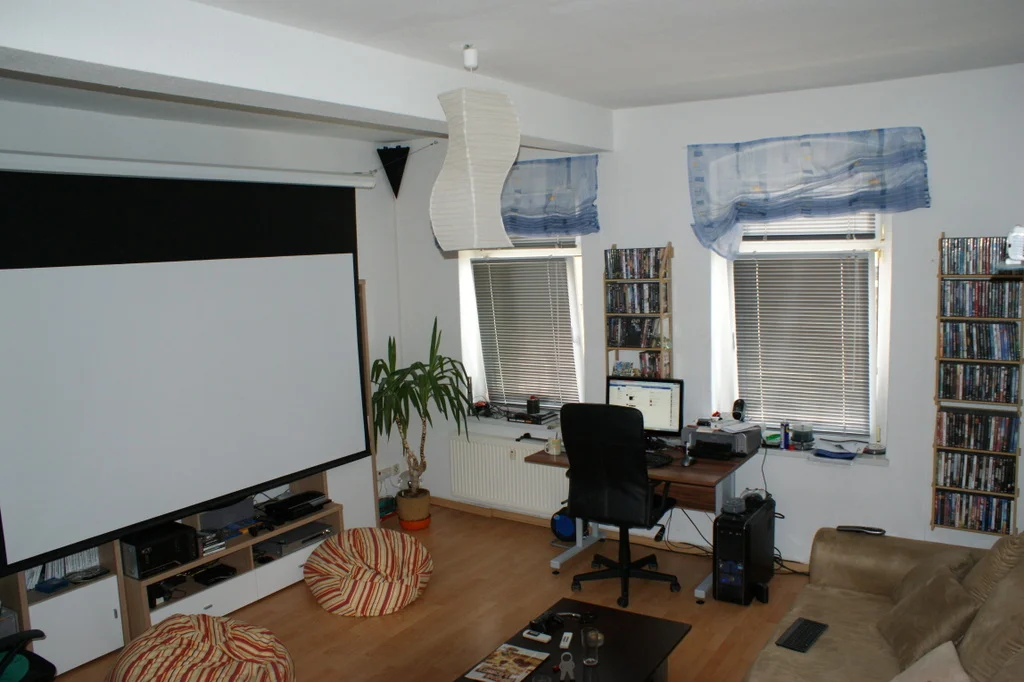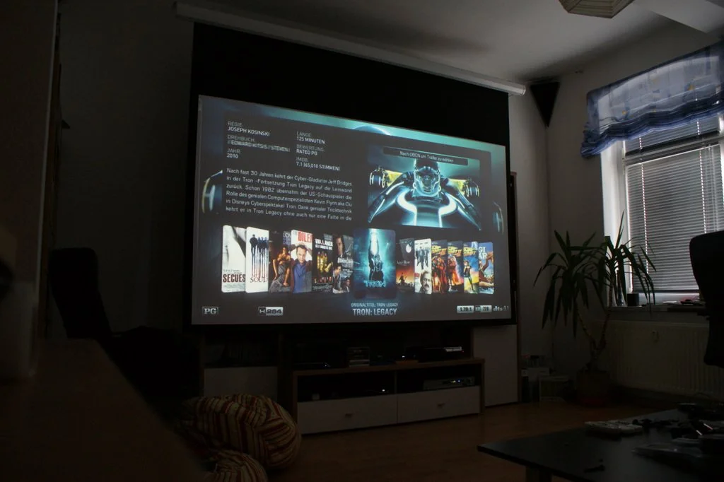 Then he stuck a fully motorized 110 inch 16:9 screen on his wall.