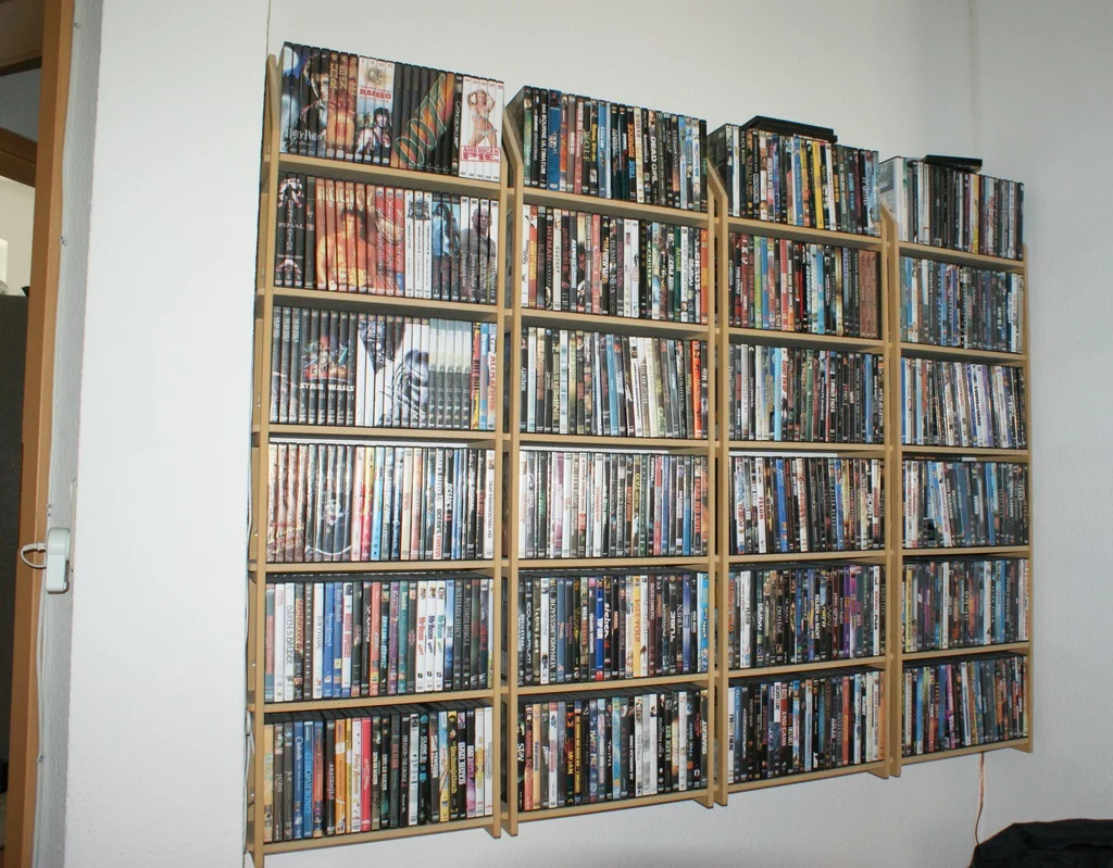 He mounted his apparently infinite supply of bluray movies onto his wall.