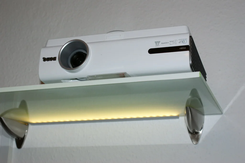 Then he stuck the BenQ W600+ 3D projector on the wall to give his living room that “My room is better than yours” look.