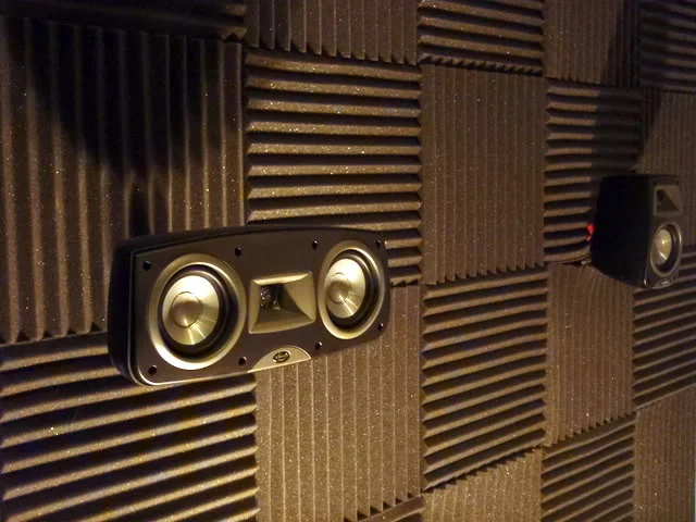 Fortunately, Jon is much more willing to push forward with projects than I am, so he didn’t let that sight discourage him. He finished the true wall behind the screen, complete with Klipsch Synergy Quintet speakers, which are pretty inexpensive, yet do a great job of filling the space in your smaller home theater rooms.