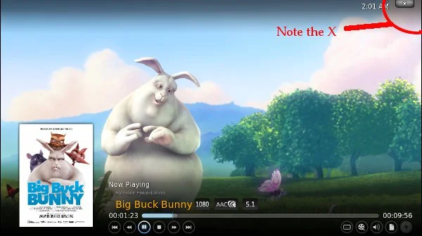 As you should see, the menu obscures much less of the video than it did in Dharma. It is now possible to return to the menu while the video is still playing by hitting the X in the top right corner. Knowledge of special buttons is no longer required. Also, you can use your mouse or finger to seek using the slider.